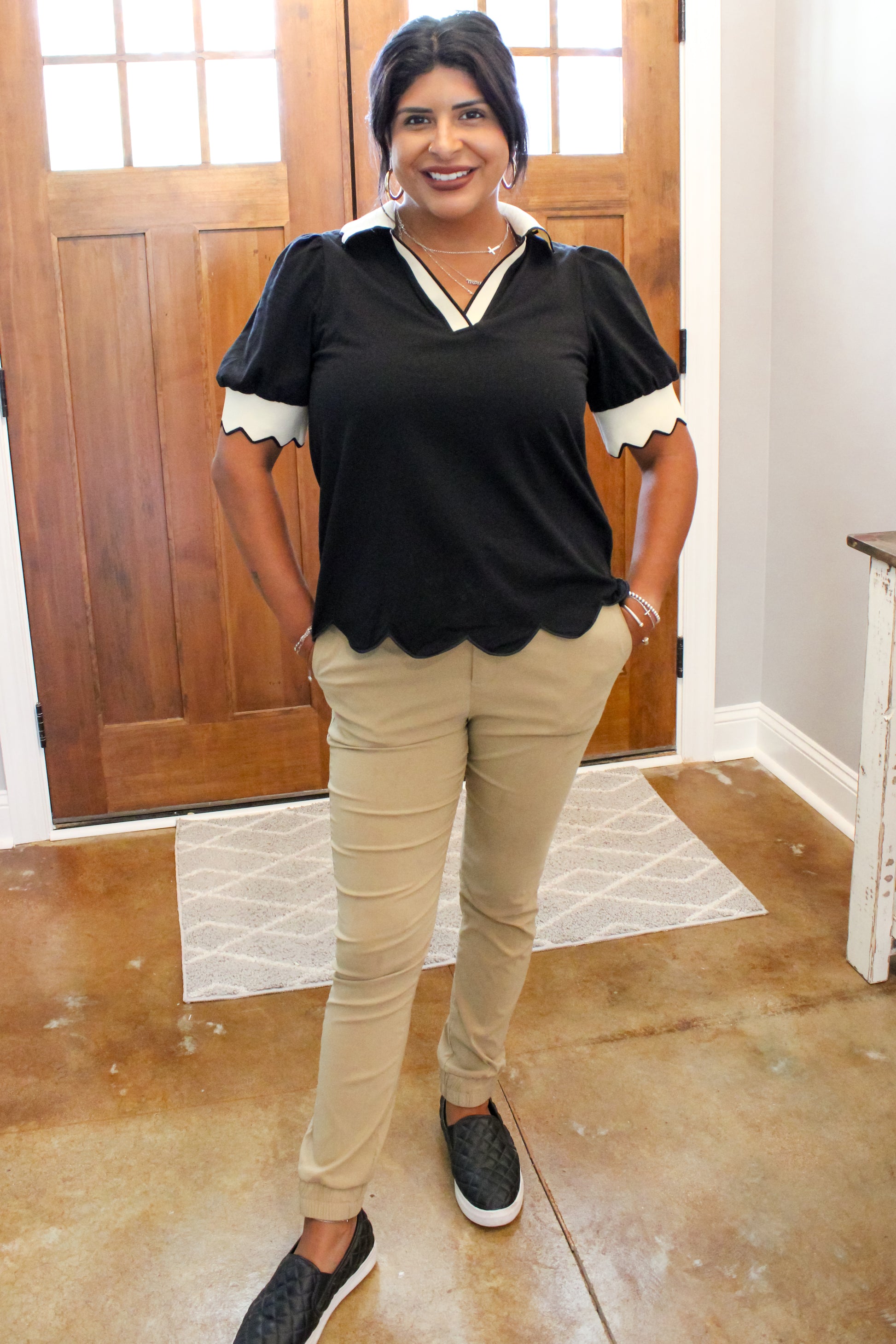 Black Collard V Neck